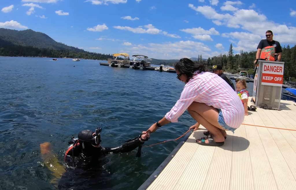 Mal-entendido faz tutora pular na piscina para salvar cadela, que assiste resgate ‘de camarote’; assista