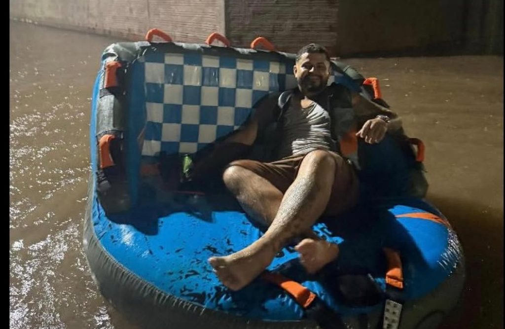 A forte chuva que atingiu Cáceres (218 km de Cuiabá) na última sexta-feira (6) alagou ruas, interrompeu o tráfego e causou transtornos a moradores. Em meio ao cenário de vias tomadas pela água, um morador chamou a atenção ao utilizar um sofá inflável para atravessar o alagamento, cena que rapidamente viralizou nas redes sociais.