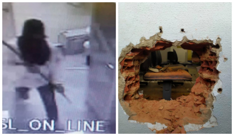 A caminho do local, os policiais foram informados que as imagens de monitoramento mostravam que dois homens encapuzados haviam entrado no local. A PM, então, verificou que os suspeitos tinham armas longas, e que outros três estavam na área externa.