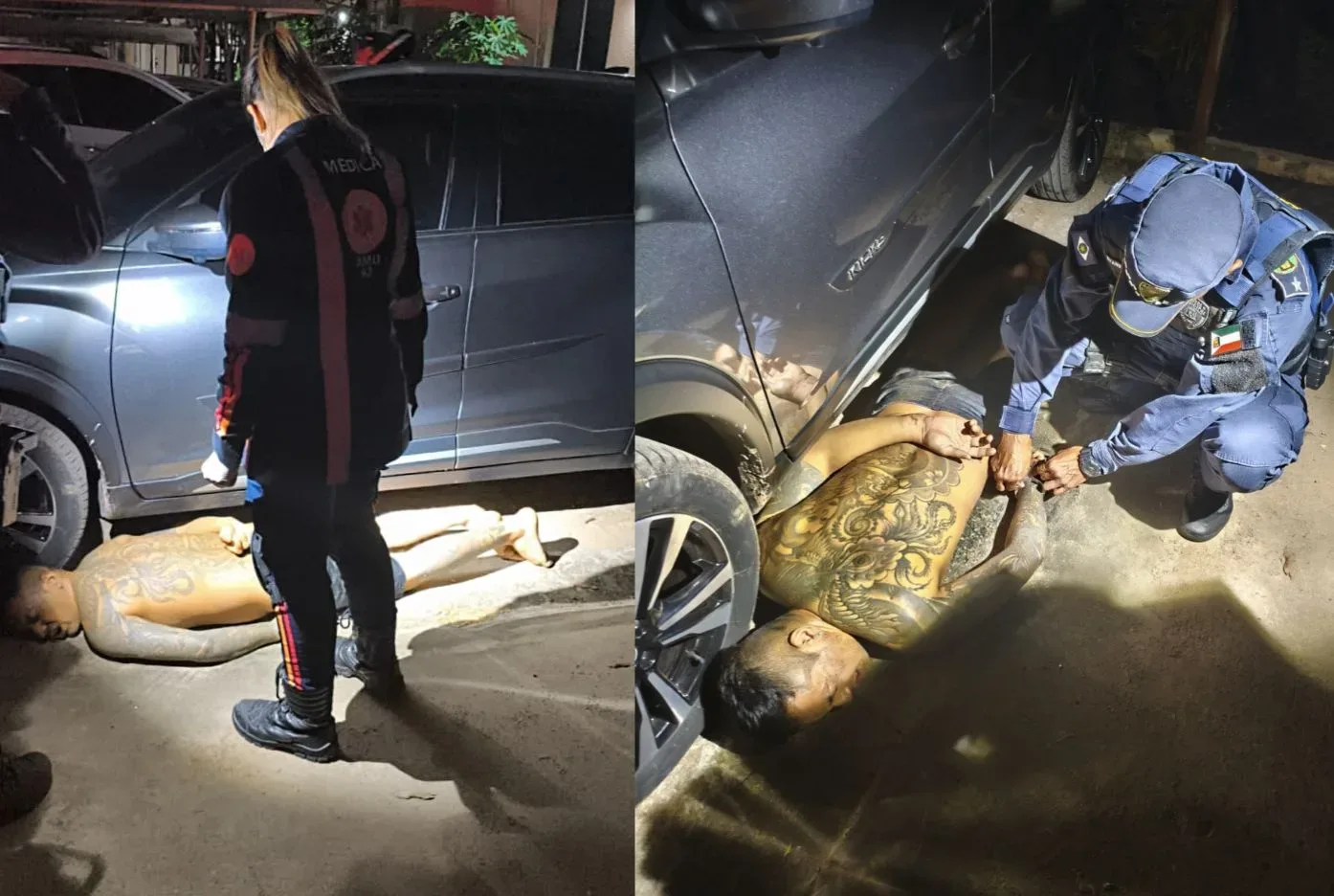 As equipes iniciaram buscas no condomínio e nas ruas próximas. Pouco depois, os guardas localizaram o homem escondido embaixo de um veículo e realizaram a prisão.