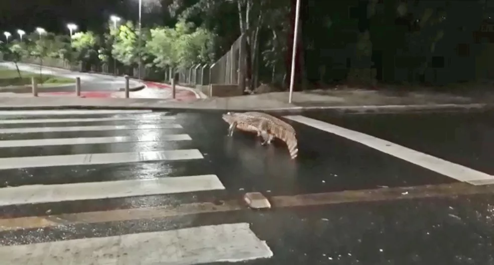 Jacaré atravessa na faixa de pedestres