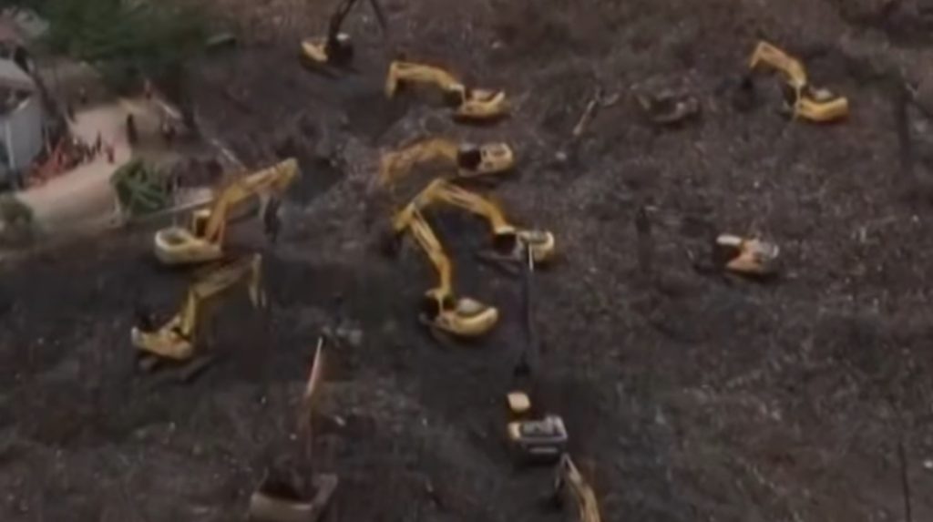 Além do trabalho manual, 17 escavadeiras foram utilizadas para remover parte dos resíduos e facilitar o acesso às áreas mais profundas do deslizamento.