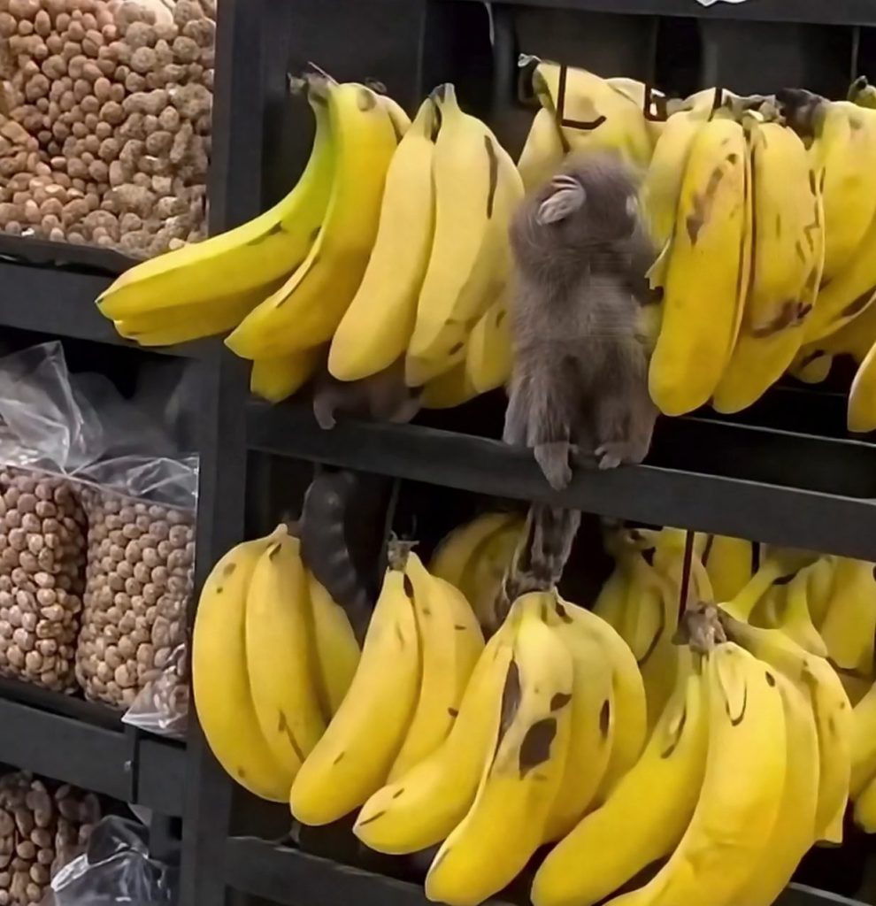 Os animais consumiam bananas diretamente na área de hortifruti do estabelecimento.