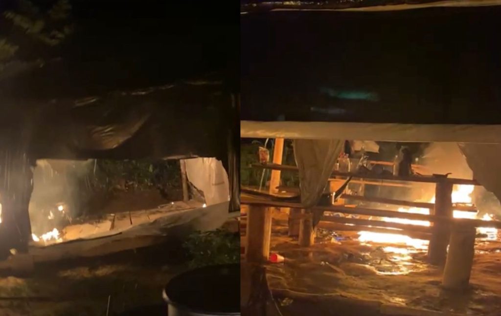 - Alojamentos improvisados montados para abrigar garimpeiros