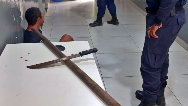 Na manhã desta segunda-feira (1º), a Guarda Municipal de Várzea Grande prendeu um homem de 55 anos que ameaçava passageiros com um facão e uma enxada dentro do Terminal André Maggi. O suspeito caminhava entre os usuários do transporte coletivo, intimidando as pessoas de forma agressiva e visivelmente alterada.