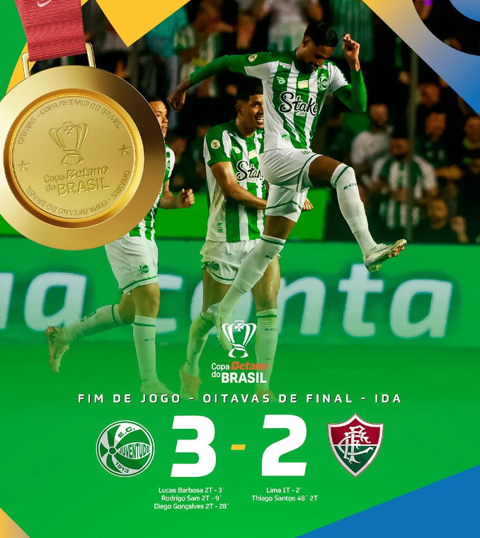 O Juventude venceu o Fluminense por 3 a 2 na ida das oitavas de final da Copa do Brasil, no Estádio Alfredo Jaconi. Inicialmente, Lima abriu o placar para o Fluminense aos dois minutos; entretanto, o Juventude reagiu no segundo tempo. Em menos de dez minutos, Lucas Barbosa e Rodrigo Sam viraram o jogo. Posteriormente, Diego Gonçalves ampliou para 3 a 1. Por fim, Thiago Santos descontou, mantendo as esperanças do Fluminense.