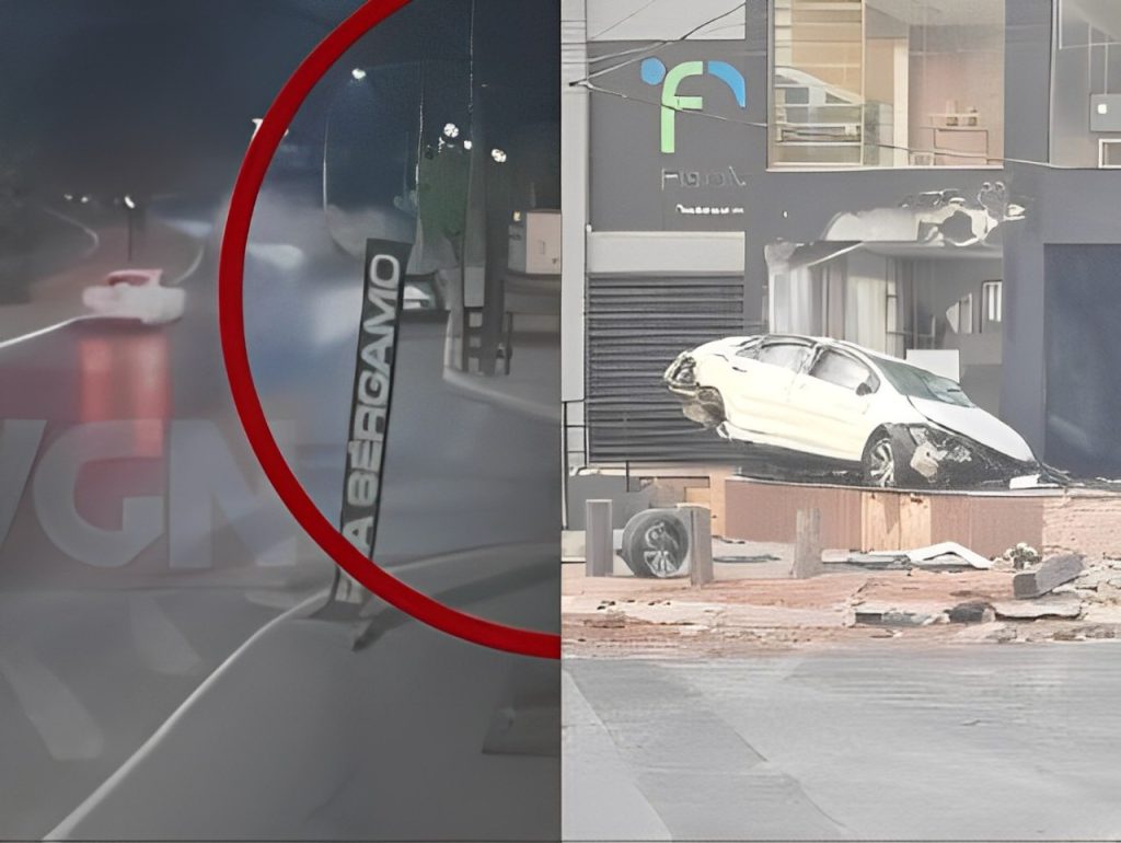 As primeiras imagens, capturadas por uma câmera de segurança, já mostravam a motorista perdendo o controle do carro ao tentar fazer uma curva no cruzamento entre a Avenida Érico Preza e a Rua Ferrara. Como consequência, o veículo subiu na calçada, colidiu com uma lixeira de grande porte e capotou várias vezes antes de parar na fachada de uma empresa.