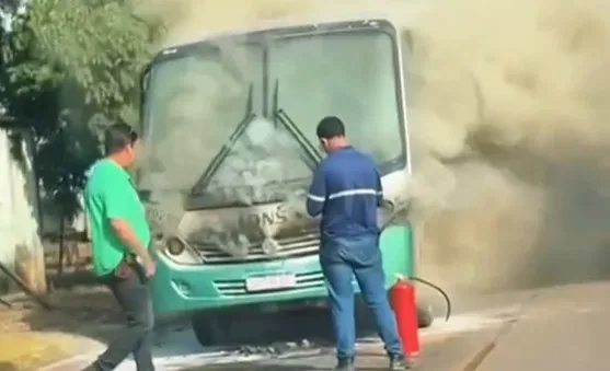 Um ônibus que transportava funcionários de um frigorífico pegou fogo na tarde desta segunda-feira (13), em Rondonópolis. O veículo foi tomado pelas chamas rapidamente enquanto trafegava pela via paralela à BR-364, no bairro Parque Universitário.