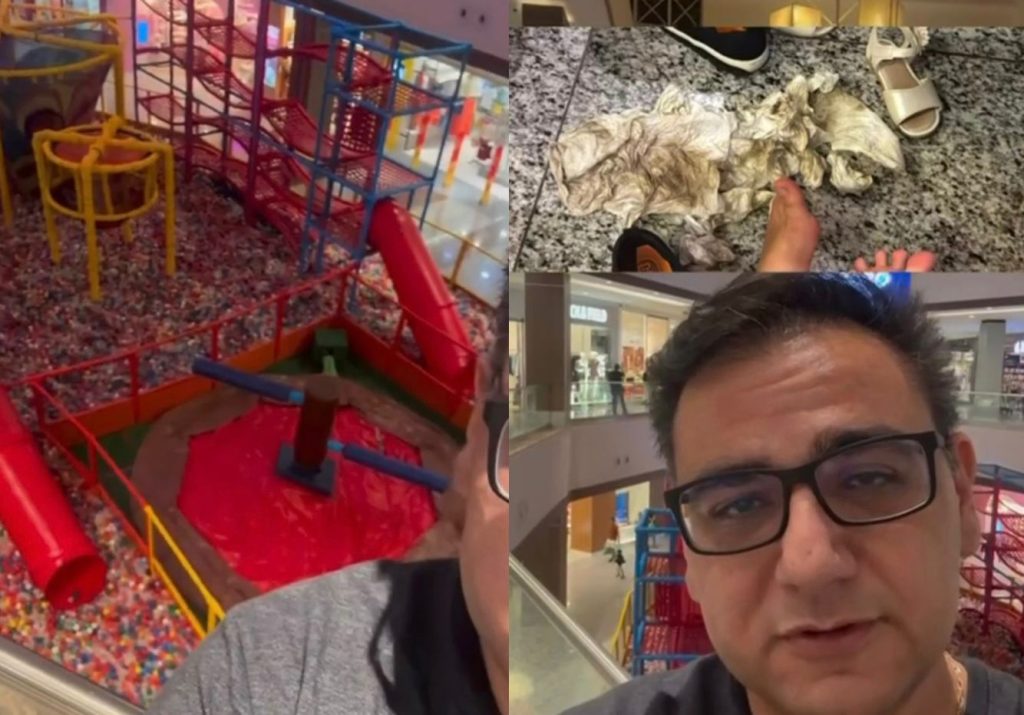 Um pai gravou e publicou um vídeo nas redes sociais para denunciar um brinquedo instalado no Shopping Estação, em Cuiabá. Ele mostrou que o local — montado entre as lojas do shopping — oferece risco à segurança e à saúde das crianças. No vídeo, ele afirma que uma amiga de sua filha cortou a mão dentro do brinquedo e que outras crianças saíram cobertas de poeira.