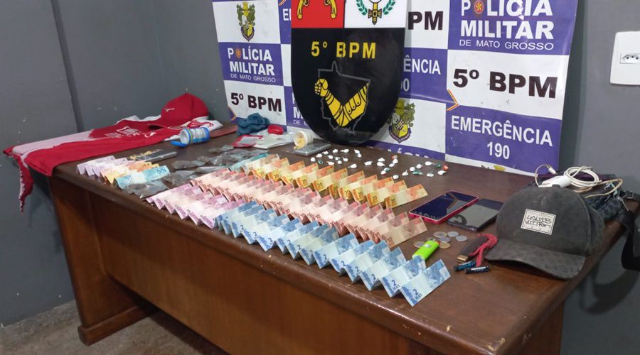 Os policiais encontraram entorpecentes, dinheiro em espécie e diversos materiais usados na comercialização de drogas durante a abordagem. A equipe confirmou os indícios de tráfico ainda no local da ocorrência.
