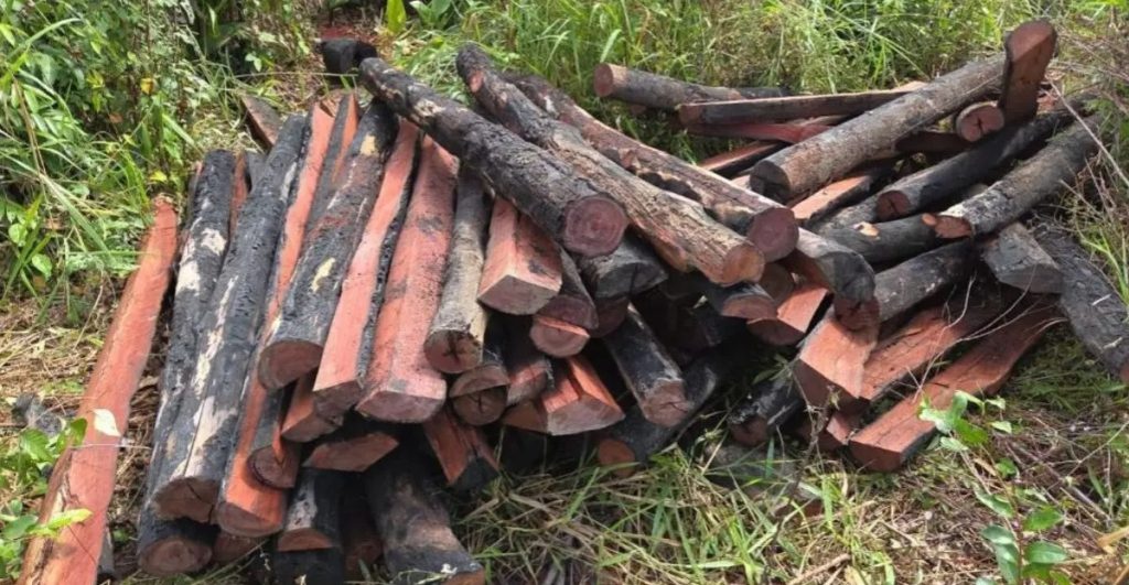 Com base nas informações do motorista, os investigadores localizaram na manhã seguinte a área usada para o corte ilegal da madeira. No local, a equipe encontrou outras 300 lascas prontas para transporte, além de ferramentas, galões de combustível e uma motocicleta abandonada — indícios de atividade criminosa recorrente.
