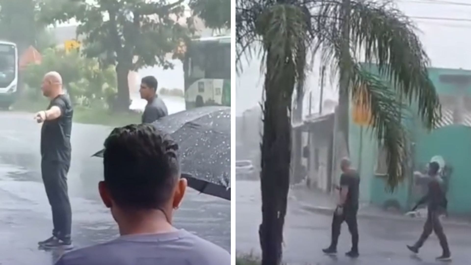 Prefeito enfrenta chuva no CPA 3 e fiscaliza obra inacabada do terminal; veja vídeo