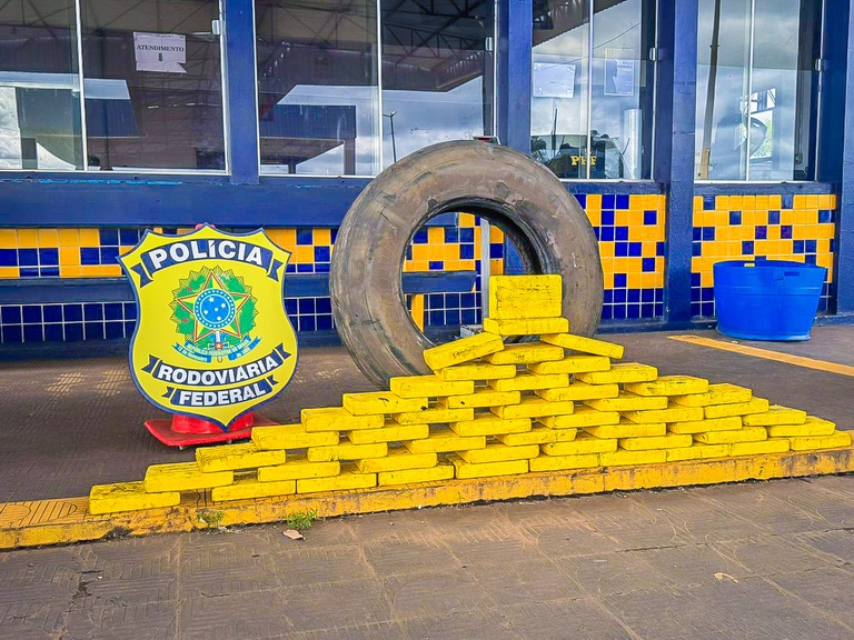A Polícia Rodoviária Federal (PRF) apreendeu mais de 52 quilos de cloridrato de cocaína na manhã desta terça-feira (10) durante uma fiscalização na BR-364, em Rondonópolis (MT). Os agentes encontraram a droga escondida no compartimento do estepe de um caminhão e prenderam o motorista em flagrante por tráfico de drogas.