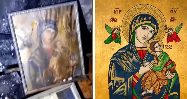 Os bombeiros encontraram uma bíblia e um quadro de Nossa Senhoa do Perpétuo Socorro intactos em meio aos escombros.