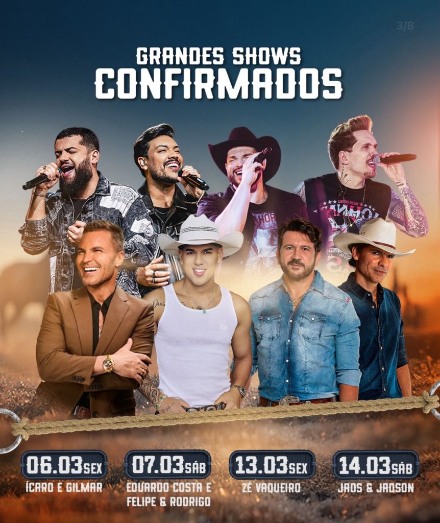 Entre os shows nacionais confirmados estão Zé Vaqueiro e a dupla Jads & Jadson. A entrada é gratuita, com incentivo para que os visitantes doem 1 kg de alimento não perecível para ações sociais.
