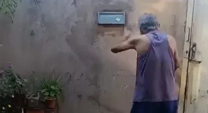 Um vídeo é registrado e é compartilhado nas redes sociais, sendo mostrado um idoso em aparente encenação de agressão contra si mesmo.