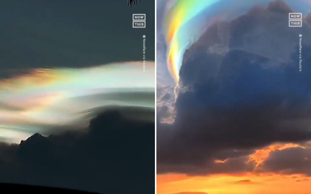 O nome desse lindo evento se chama ‘iridescência’, que ocorre quando os raios solares atravessam gotículas de água congelada dentro das nuvens. E recebe também o nome de ‘Nuvem Pileus‘, apelidada pelo Atlas Internacional de Nuvens da Organização Meteorológica Mundial (OMM).